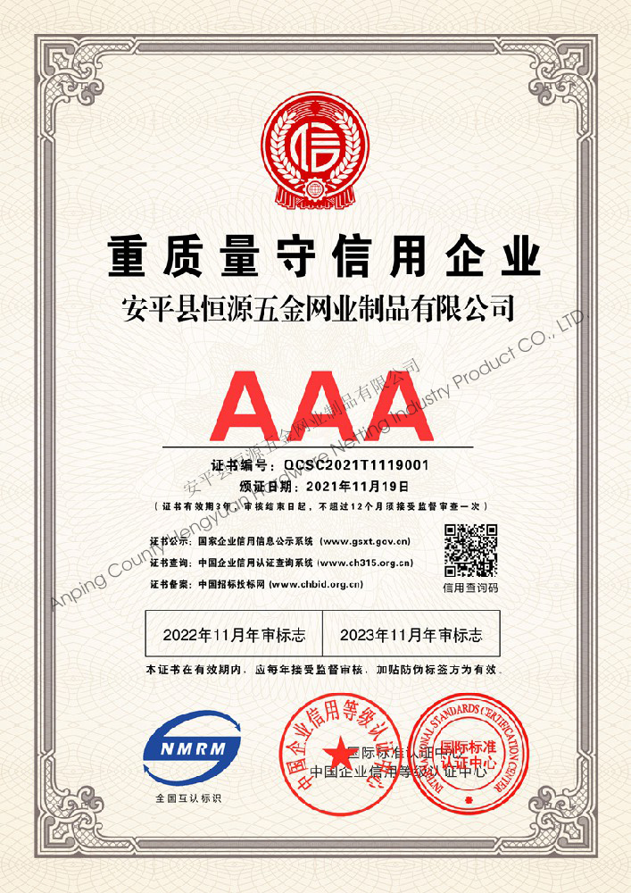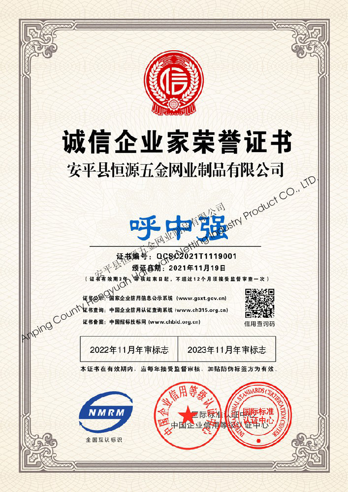 多年來,安平縣恒源五金網(wǎng)業(yè)制品有限公司堅(jiān)持“科技興企、質(zhì)量立業(yè)”的經(jīng)營(yíng)理念和“誠(chéng)心為本、客戶至上”的合作宗旨,優(yōu)化生產(chǎn)工藝,打造優(yōu)質(zhì)產(chǎn)品,提供完善的服務(wù),受到國(guó)內(nèi)外客戶的一致好評(píng),產(chǎn)品行銷全國(guó)各地,并出口美國(guó)、德國(guó)、韓國(guó)、日本、臺(tái)灣等國(guó)家和地區(qū)。